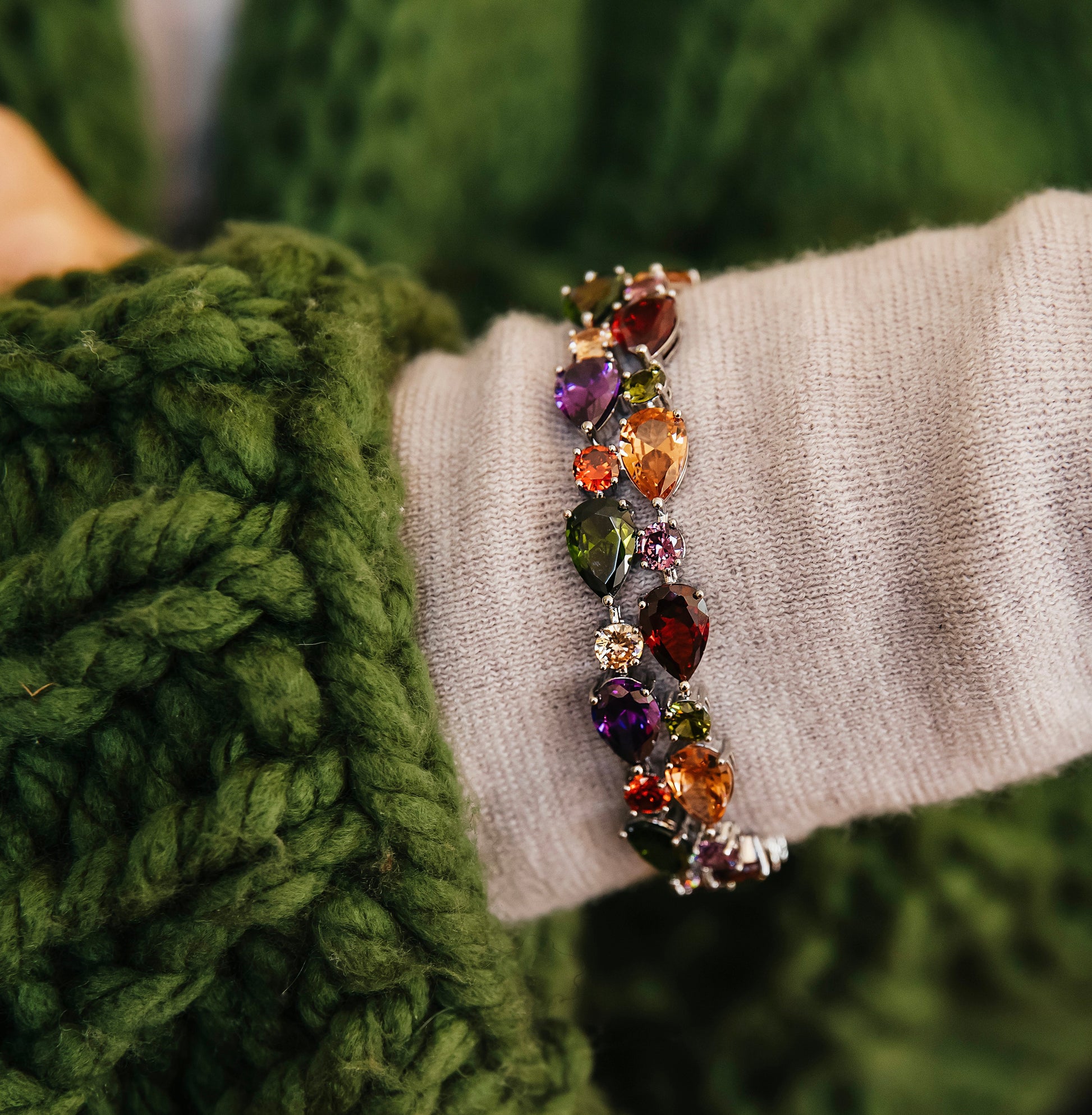 Elevate your elegance with this 18K gold dipped bracelet, adorned with vibrant cubic zirconia stones. Its refined design adds a subtle yet striking splash of color, perfect for enhancing any outfit with a touch of sophistication and timeless charm.