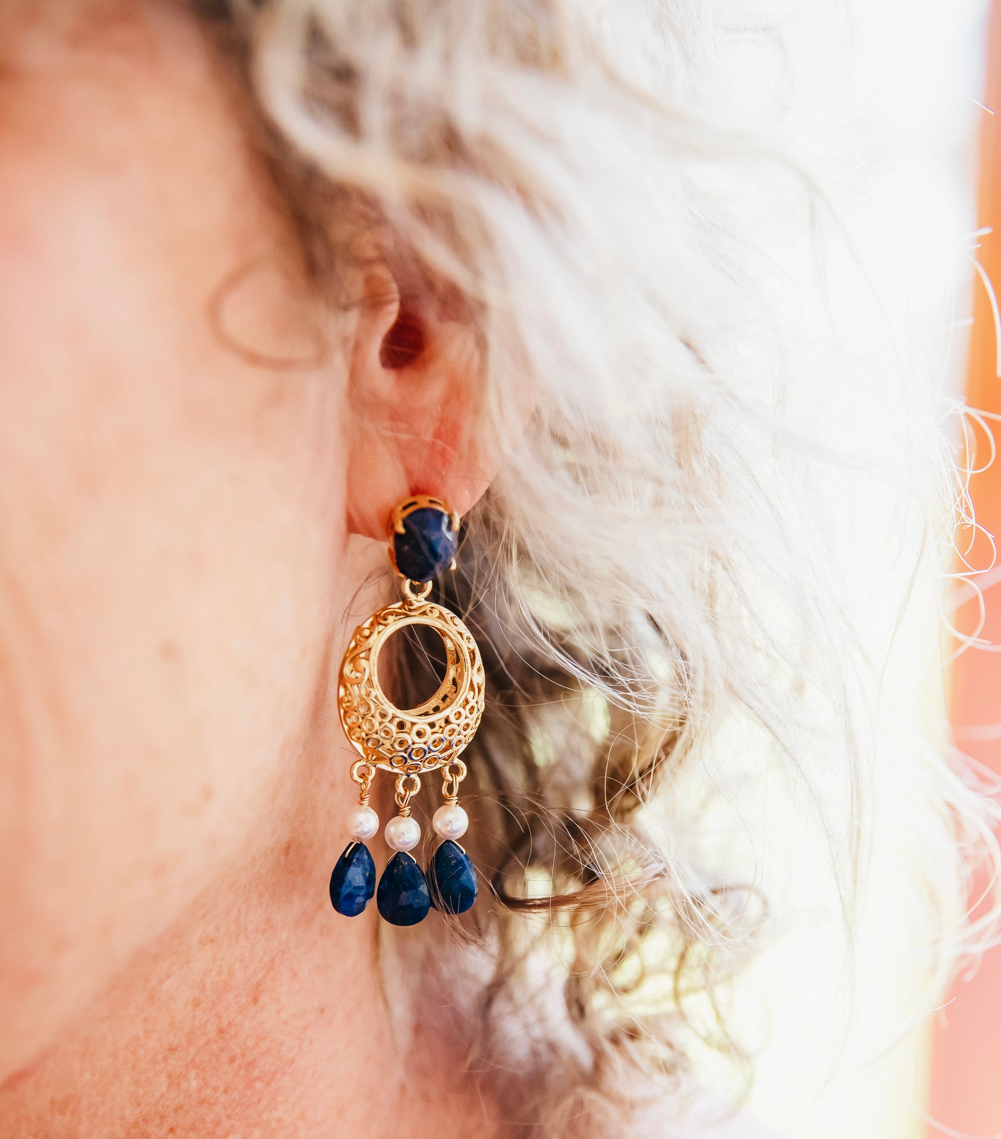18k Gold dipped drop Pink or Lapis quartz and seed Pearls