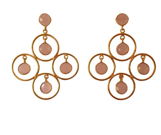 Introducing Cluster Drops, the epitome of luxury and elegance. These exquisite earrings feature delicate Rose Chalcedony stones, set in a stunning drop cluster design. With 18K Gold plating, they exude a sense of sophistication and exclusivity. Elevate your look with these captivating gems.