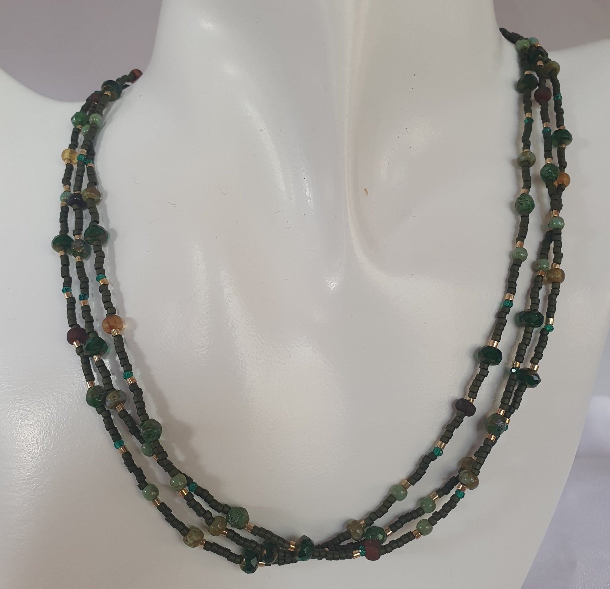 Indulge in the luxurious beauty of our Czech Glass Hand Beaded Necklace. Handcrafted with delicate green and shimmering gold beads, this necklace is a true work of art. Perfect for adding a touch of sophistication and elegance to any outfit. Elevate your style with this exclusive and unique accessory.