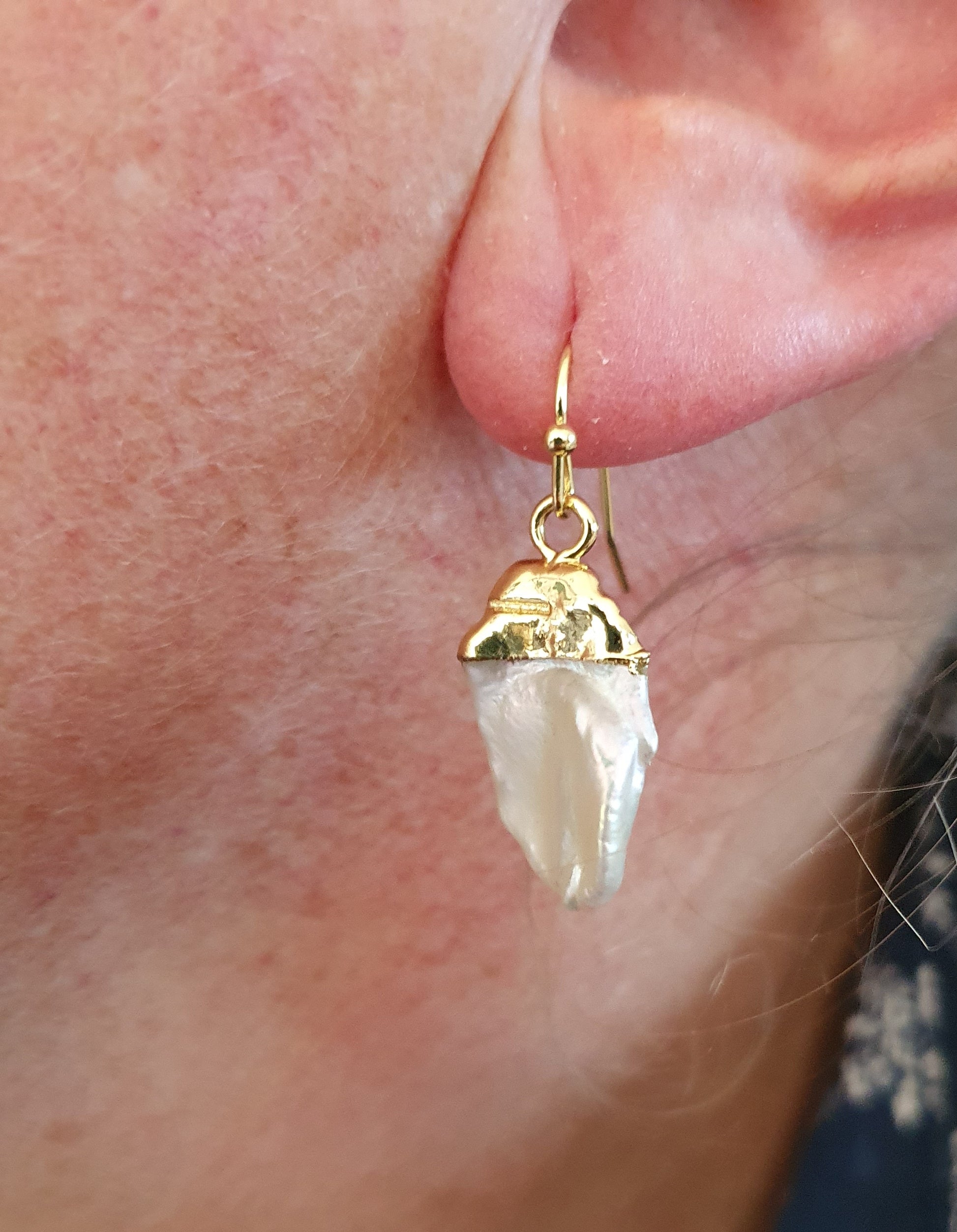 Transform any outfit with our elegant Mother of Pearl 18K Gold plated Earrings. These drops add a touch of luxury and sophistication, crafted with exquisite Mother of Pearl and delicately plated with 18K Gold. Elevate your style and make a statement with these exclusive earrings.