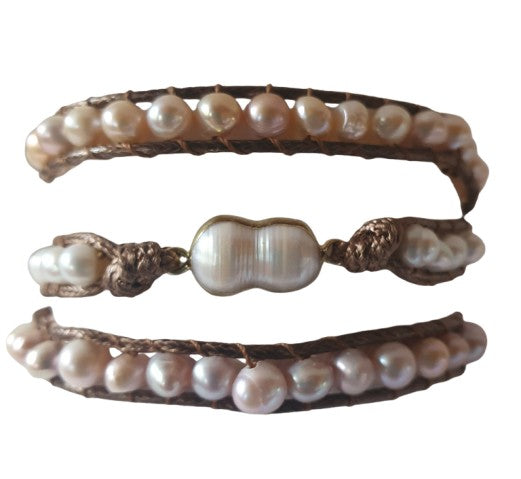 Indulge in luxury with our Pearl Wrist Wrap. The delicate baroque pearls, adorned with soft pink and cream seed pearls, create a timeless and elegant piece. Embrace the sophistication of this wrap and add a touch of opulence to any outfit.